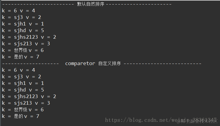 System.out.println("------------------- comparetor 自定义排序 --------------------------");