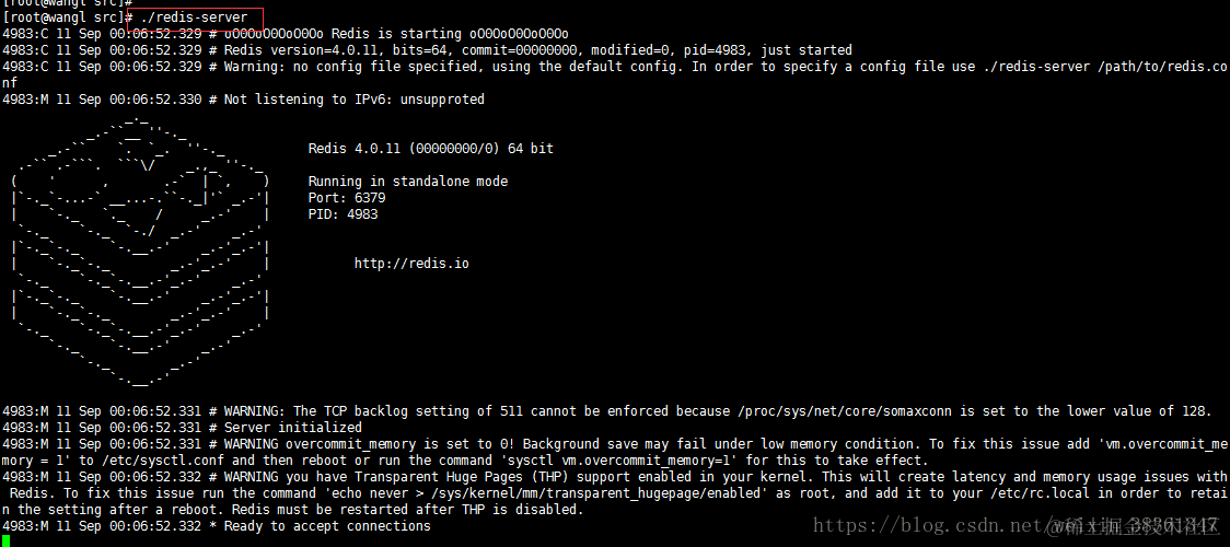 进入src 文件 启动Redis ./redis-server 显示如下说明成功启动