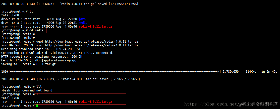 cd 到 新建指定文件夹 直接 输入命令 wget download.redis.io/releases/re…