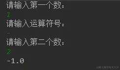 System.out.println("请输入第一个数:"); Scanner in = new Scanner(System.in); String str1 = in.next(); System.out.println("请输入运算符号:"); String flag = in.next(); System.out.println("请输入第二个数:"); String str2 = in.next(); if(flag.equals("-")){ System.out.println(Double.parseDouble(str1) - Double.parseDouble(str2)); } if(flag.equals("/")){ if (Double.parseDouble(str2) == 0) { throw new Exception("除数不能为0!"); }else { System.out.println(Double.parseDouble(str1) / Double.parseDouble(str2)); } } if(flag.equals("*")){ System.out.println(Double.parseDouble(str1) * Double.parseDouble(str2)); } if(flag.equals("+")){ System.out.println(Double.parseDouble(str1) + Double.parseDouble(str2)); } }