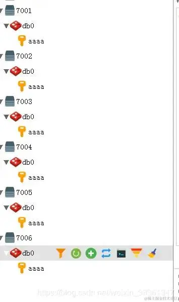 在7001 库添加一个数据测试,然后其他库进行查询 数据同步过来就说明成功。