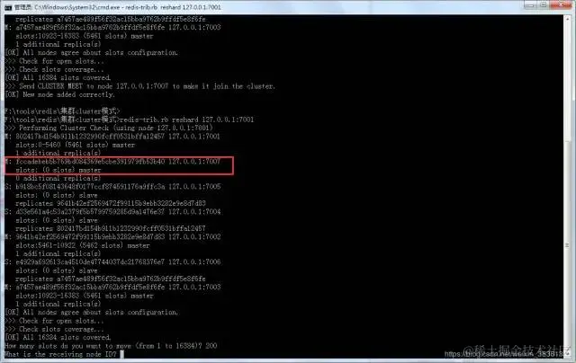 系统返回信息会提示我们要移动多少哈希槽,这里移动200个