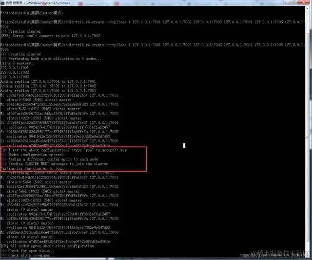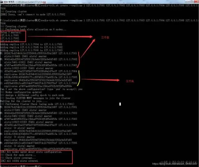 开始创建集群 打开cmd 执行构建集群脚本 redis-trib.rb