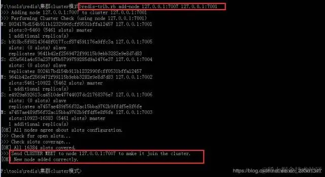 127.0.0.1:7001 是已经新增集群节点(这里可以随便写一个已知的集群节点 ip : port )