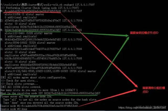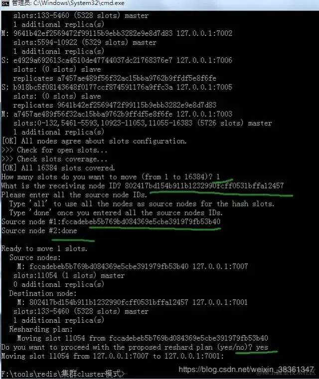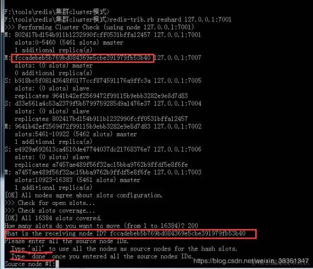 输入 done 表示把指定主节点上的槽分配给新节点.。