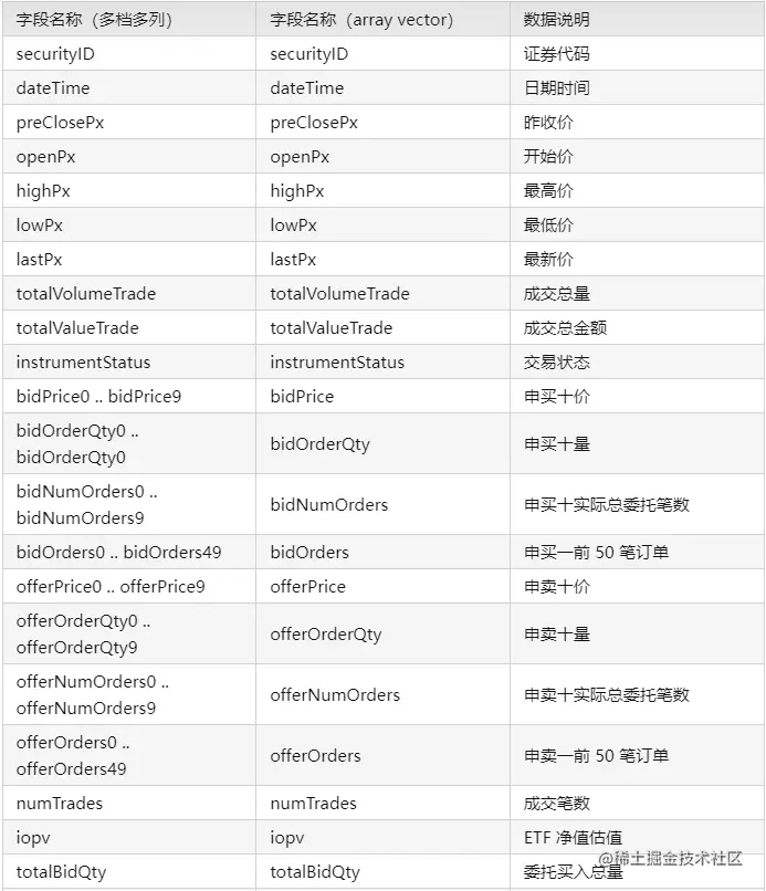 因此,level 2 快照行情的多档数据可以选择:①多列存储;② 用 array vector 存为一列。