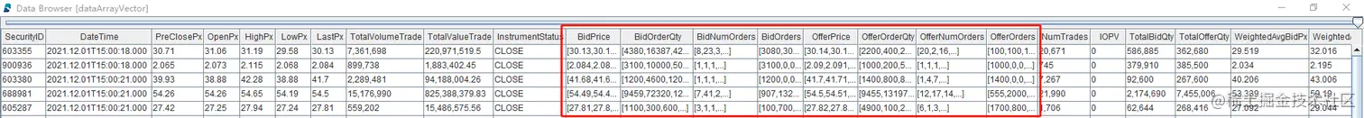 dataArrayVector = select * from loadText(csvPath + "snapshot_100stocks_arrayvector.csv", schema=table(colName, colType)) order by dateTime, securityID