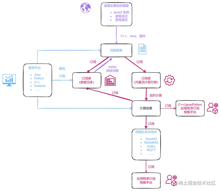 本教程主要介绍如何在 “流数据表 ——> 订阅者(内置流计算引擎) ——> 计算结果” 这段过程中,利用内置流计算引擎实现金融量化因子并优化之。
