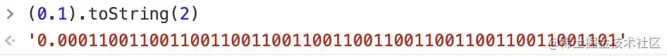 我们可以根据刚刚的规则,先看看转换0.1的值, 就能知道它转换为二进制之后的值为0.00011...(⽆限重复 0011)