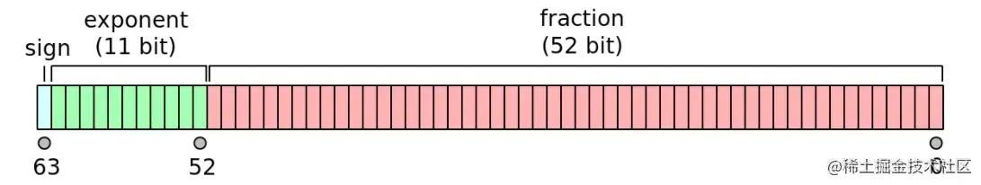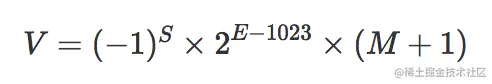 对于64为双精度浮点数来说最高位为符号位 S 紧接着11位为指数位E最后剩余的52位为有效数字 M。