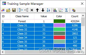 随后,将弹出如下所示的“Training Sample Manager”窗口。