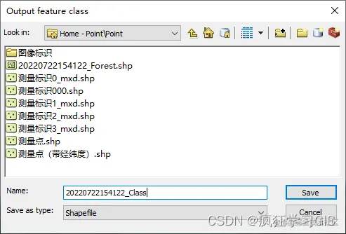 可以在弹出的“Output featura class”窗口中,配置保存的路径与文件名称。