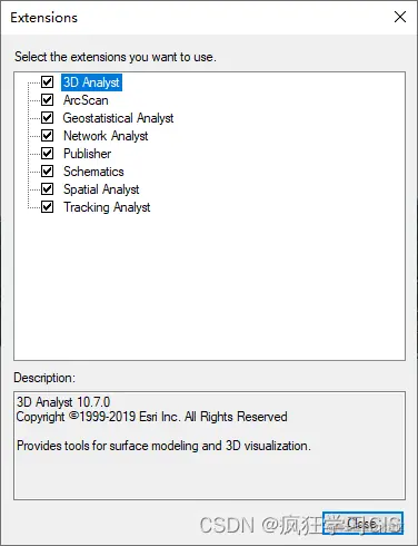 在弹出的“Extensions”窗口中,我们将全部项目都勾选中,如下图所示。