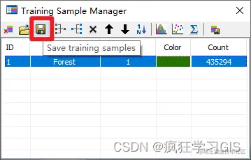 接下来,我们依然可以通过“Save traning samples”选项,实施保存当前划定好的地物类型。这里需要注意,为了避免每一次保存就新生成文件导致文件过,我们可以在第二次保存开始,直接覆盖上一次的保存结果。