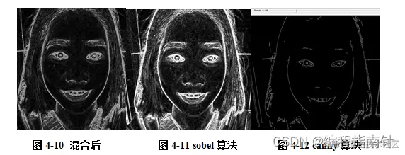 基于上述的sobel和canny的结果图对比可发现二者均具有有平滑功[[i]],但又各具特色,在噪声方面canny去噪效果好sobel虽然对噪声敏感但是可以抑制,canny在提取边缘方面视觉上连接效果更好边缘很精确完整但是边缘很细没有强弱的对比,sobel提取的边缘具有明确的方向性而且有强弱之分但是视觉上不是很准确。基于二者的特色可以二者进行图像混合融合二者各自的优缺点。