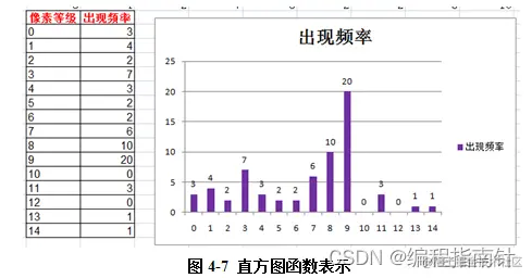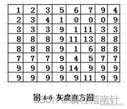 图像直方图是指图像的所有像素值处于(0-255)中的灰度等级出现的次数进行累加的数量,并且相应地生成的直方图。直方图(图4-6)反映图像的灰度级的分布特性。而图4-7反映灰度大小和它在图片中出现次数的直接关系,x坐标轴代表的是灰度大小,y坐标轴代表对应灰度在图片中出现的数量(即像素的数量),其全部坐标系统描述了图像的灰度级的分布,从而使图像的灰度分布特性可以看到的,也就是说,如果大多数像素都集中在低灰度区中,图像被呈现。