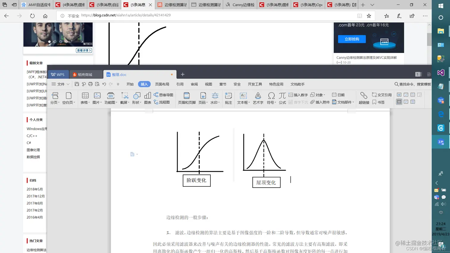 通常生产生活中所要提取的边沿就是图片样本中的发生变化包括信息最多的地方。边沿提取检测的目标就是:找到具有阶跃变化或者屋顶变化的像素点的集合。