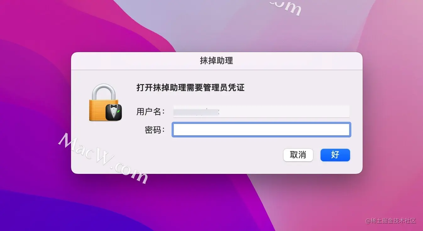- 在弹出窗口中输入你的开机密码,如图:
