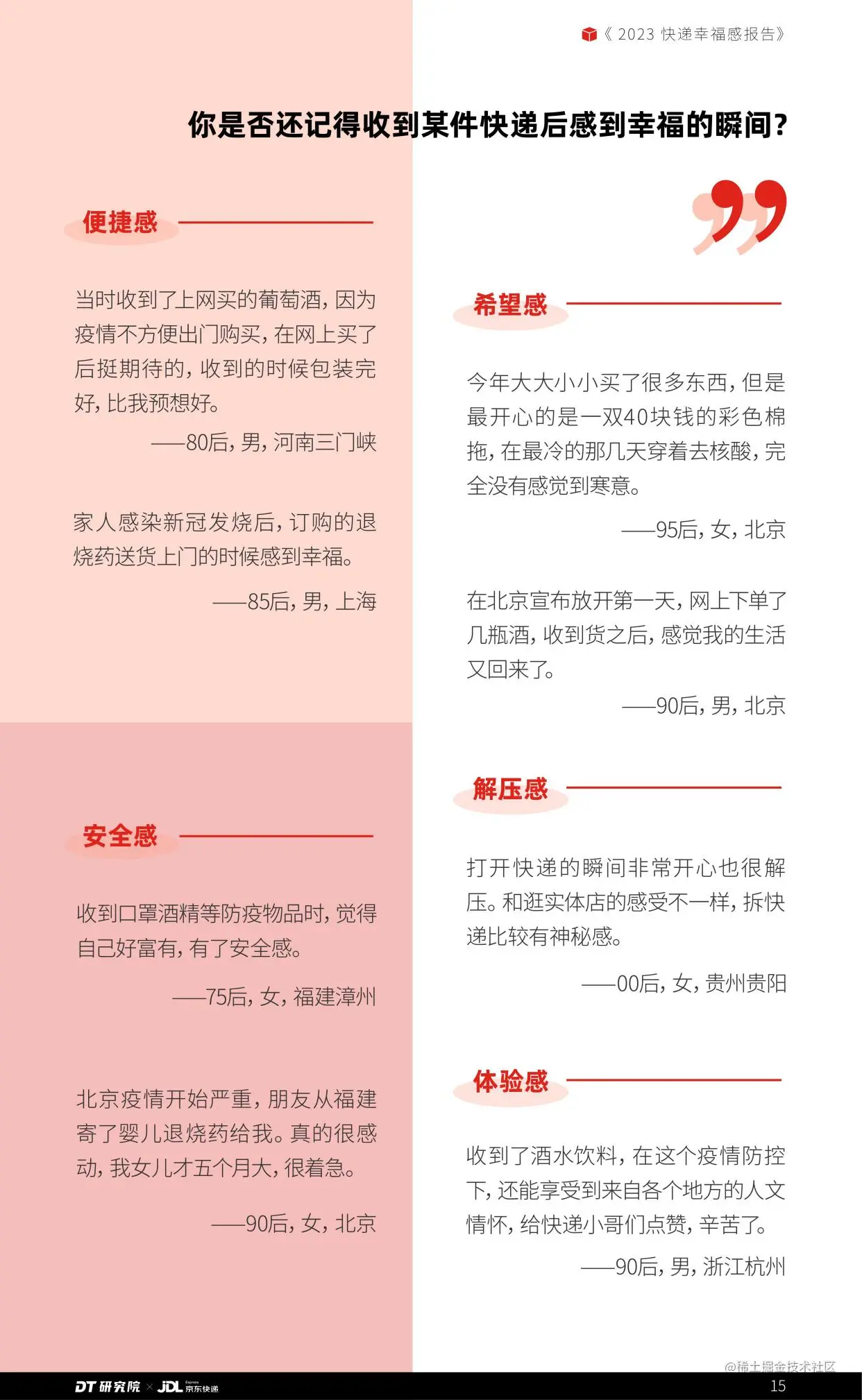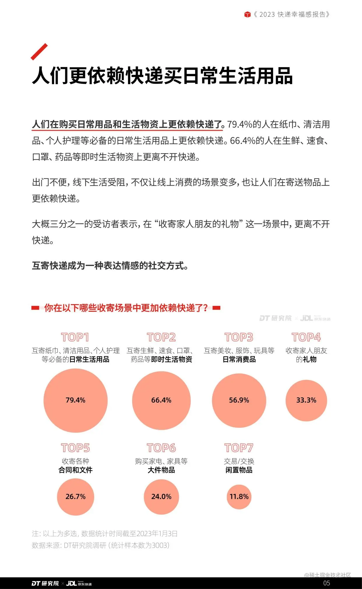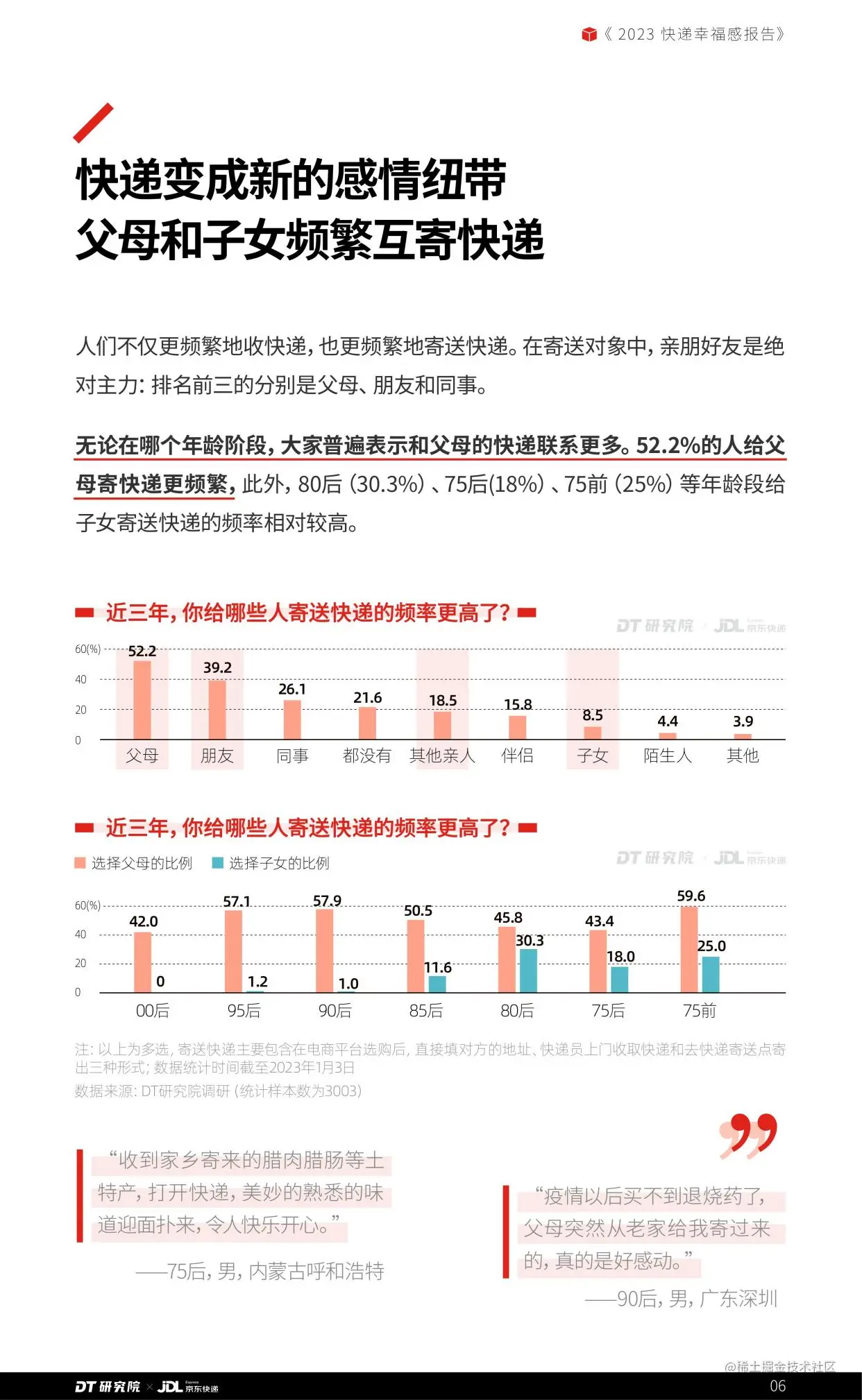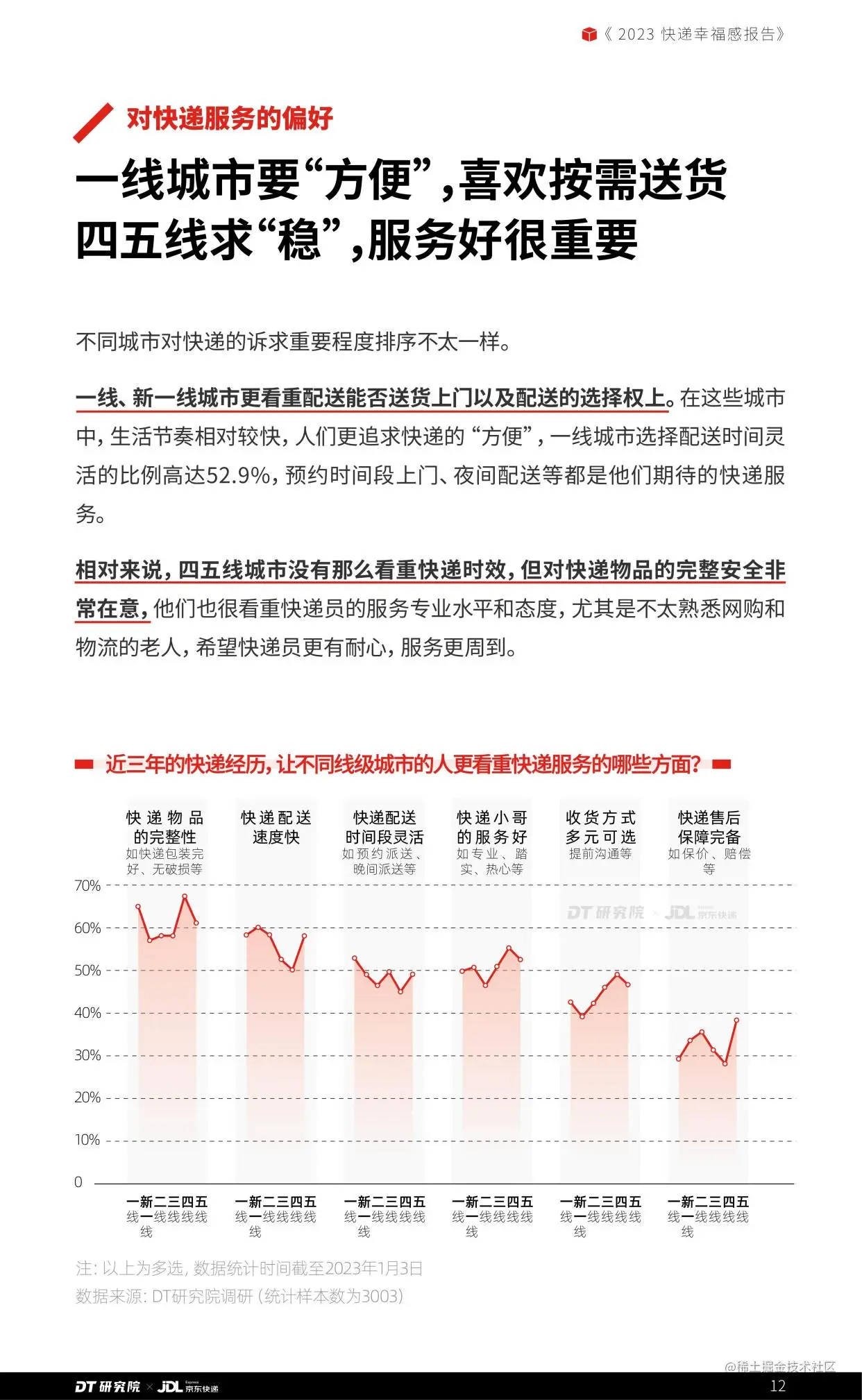 日前,京东发布了“2023快递幸福感报告”(以下简称“报告”),通过观察三年来,不同人群寄递行为的变化和对于快递的认知感受,以快递为载体洞察近3年人们生活习惯的改变和生活态度的变化。