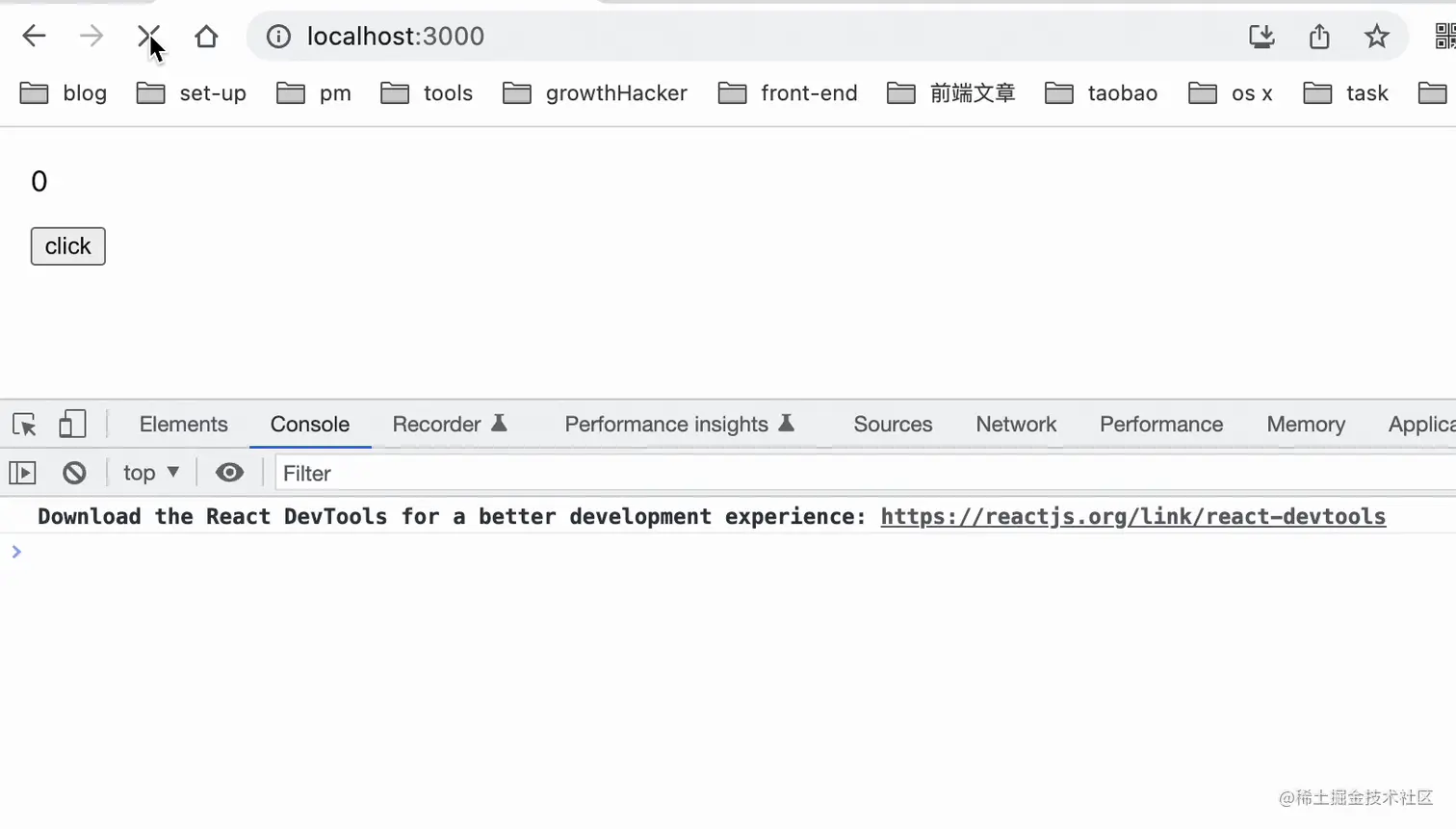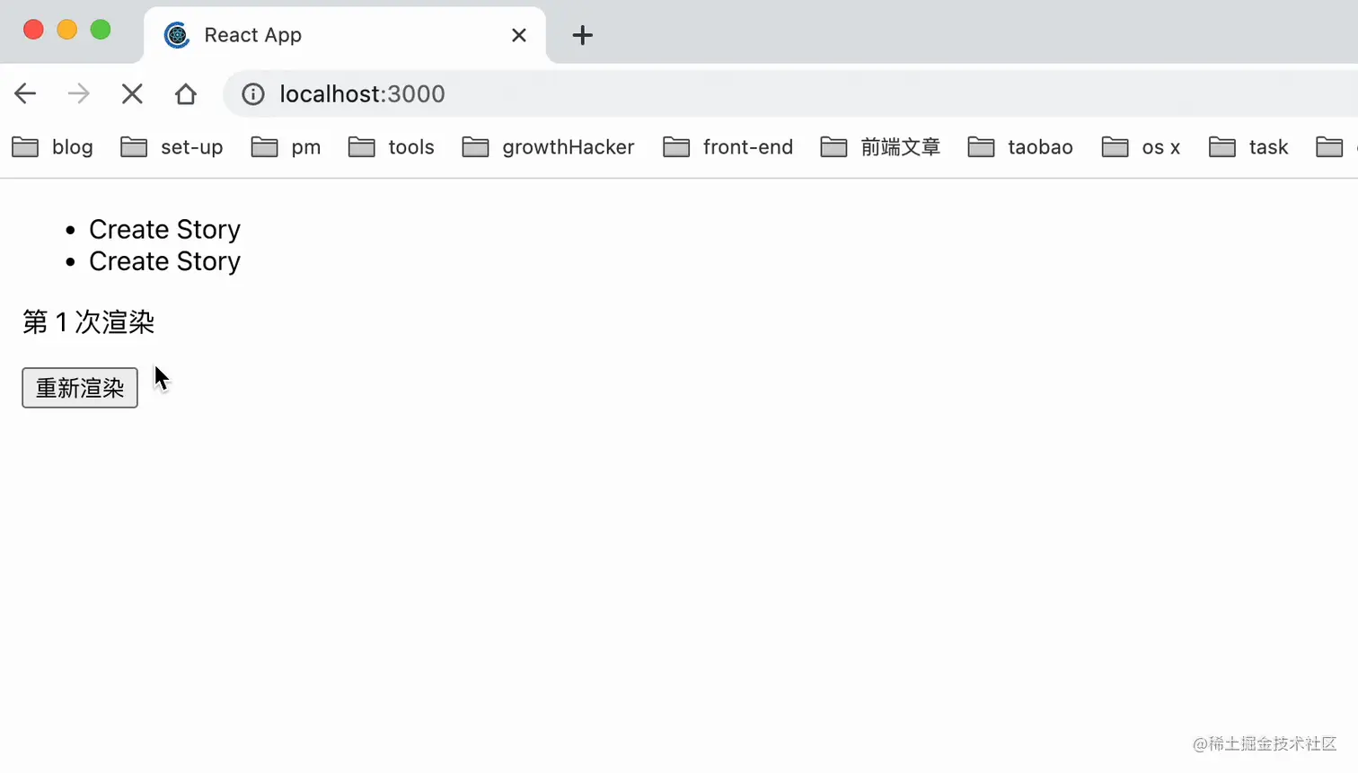 通过上面的动图效果,我们可以看到,当我们刷新首次进入页面时,输出了 2 次 "render..."。当我们点击 increment 按钮后,会再次输出 2 次 "render..."。