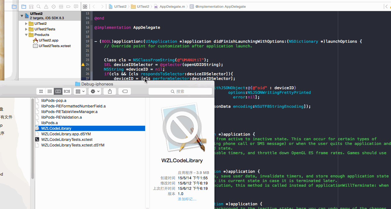 Xcode3:所在工程根目录/build/Debug-iphoneos/PRODUCT _NAME