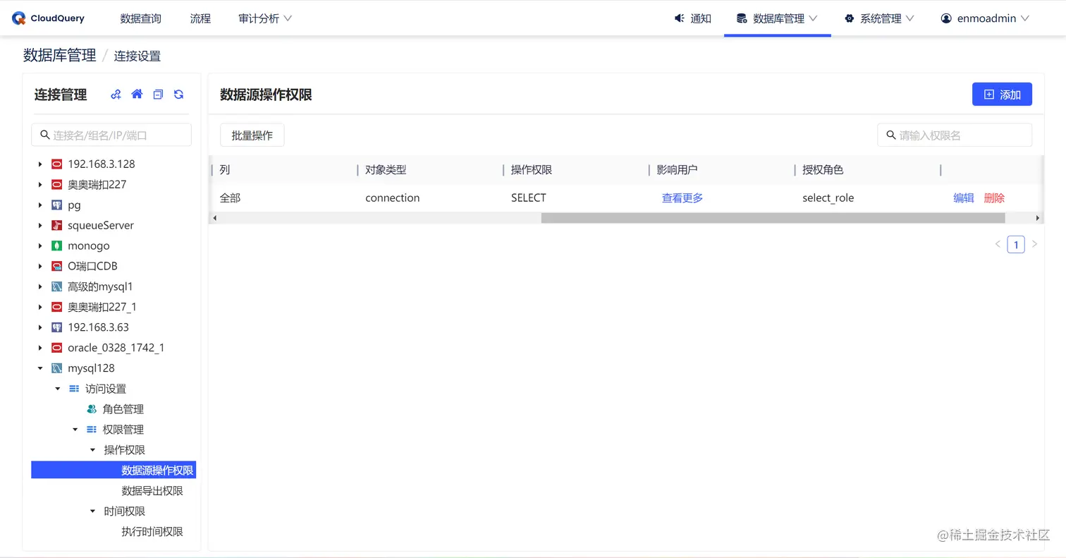 CloudQuery 支持细粒度的权限管控,如操作对象、操作类型、操作时间、影响行数、操作次数等多因素进行管控,避免高权限账号滥用风险,限制越权操作、高危操作。