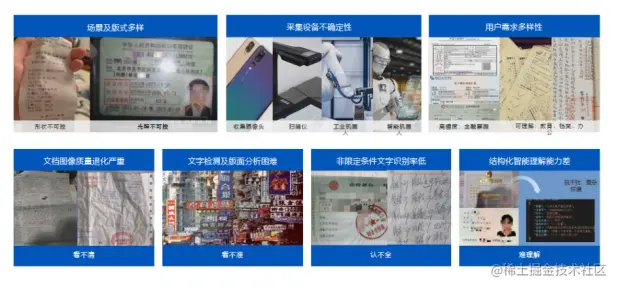 现阶段,文档图像的处理过程中面临着诸多挑战:文档类型的多样产生了繁杂的版式与结构;受拍摄器材、背景环境影响,图像时常存在噪声和质量问题。文档图像处理是图像图形技术研究的重要方向,中国图象图形学学会等专业组织及合合信息等人工智能企业长期关注文档图像智能分析、处理焦点议题,开展了系列研发和实践工作。