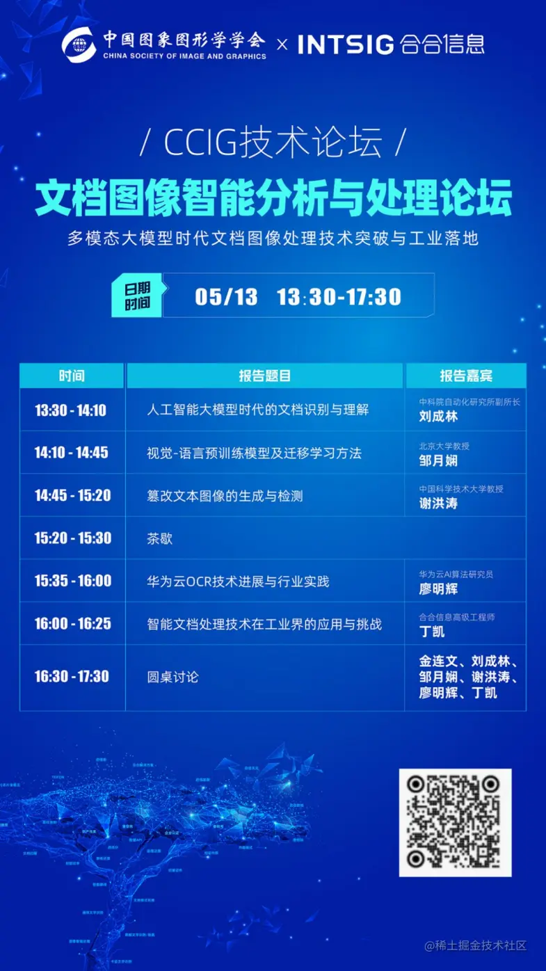 为了促进文档图像分析与处理领域的技术交流及发展,中国图象图形学学会文档图像分析与识别专业委员会与合合信息共同打造了《文档图像智能分析与处理》高峰论坛。