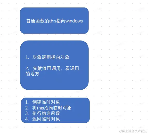 - 使用new调用一个函数,这个函数即为构造函数。构造函数里面的this是和实例对象沟通的桥梁,他指向实例对象。