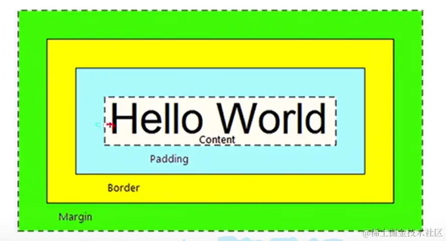 - 组成部分:内容区域,内边距区域,边框区域,外边距