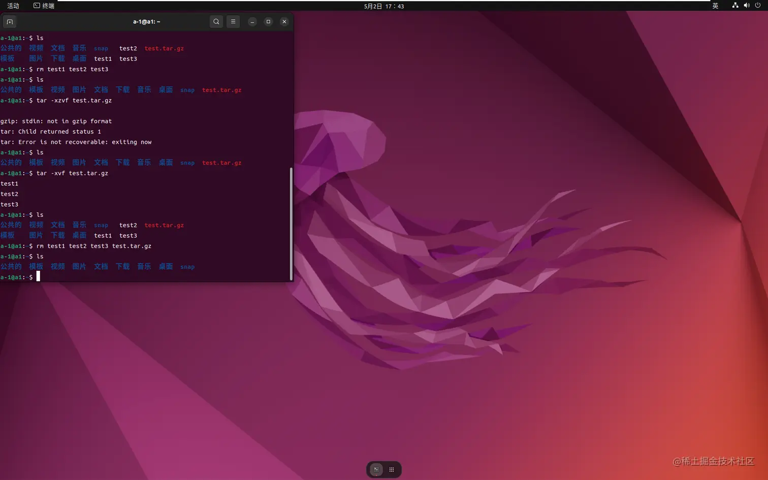 要解压缩tar.gz文件,可以使用以下命令:(“ tar -xvf test.tar.gz ”);