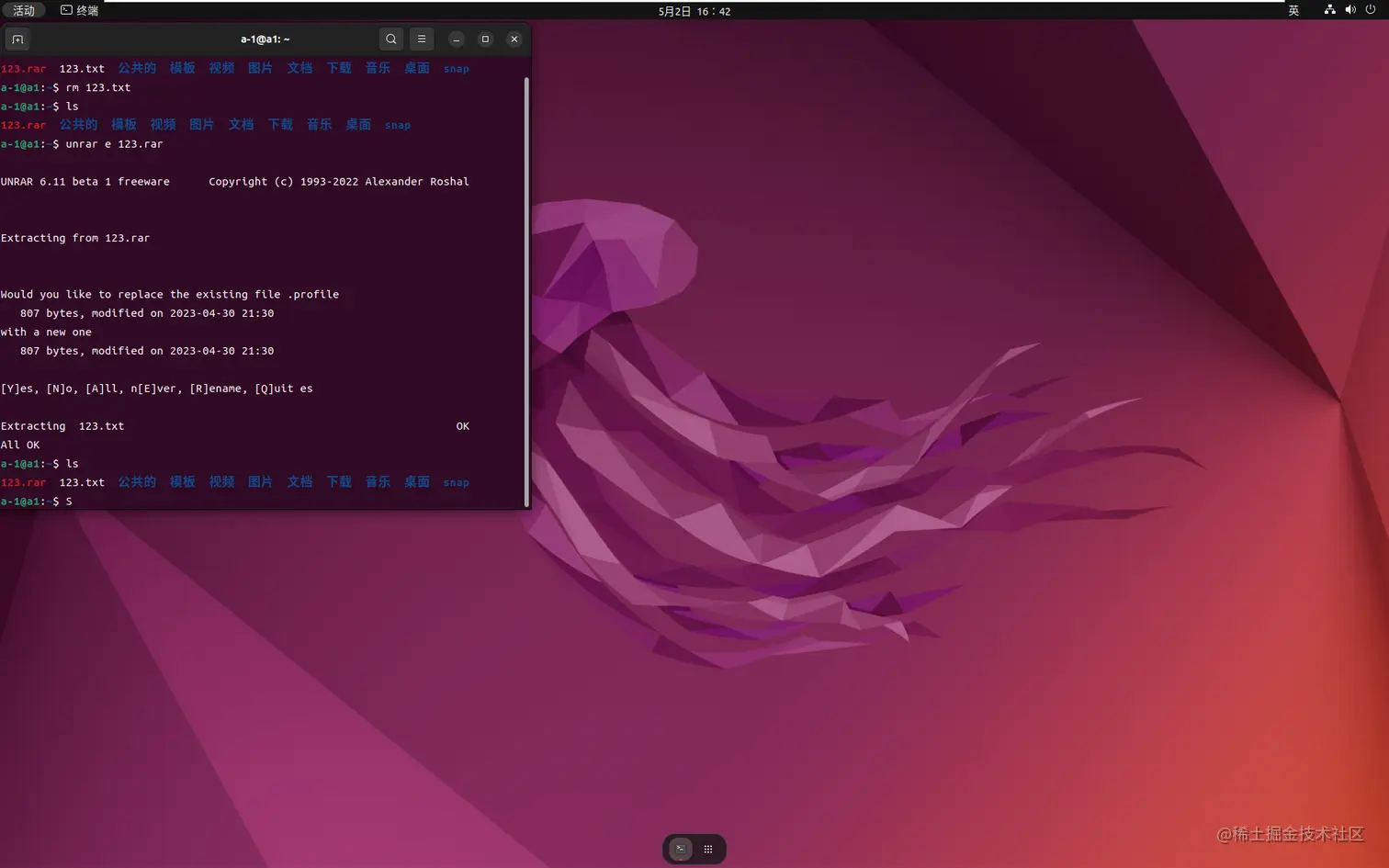 首先需要安装它,(“ sudo apt install rar”),验证密码进行安装;
