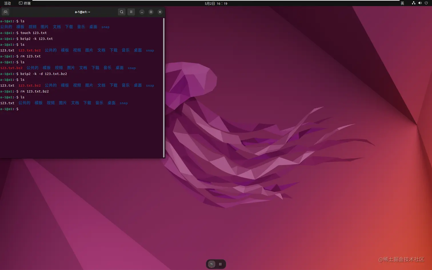bzip2 进行解压,(“ bzip2 -k -d 123.txt.bz2”),这样就解压完毕了;