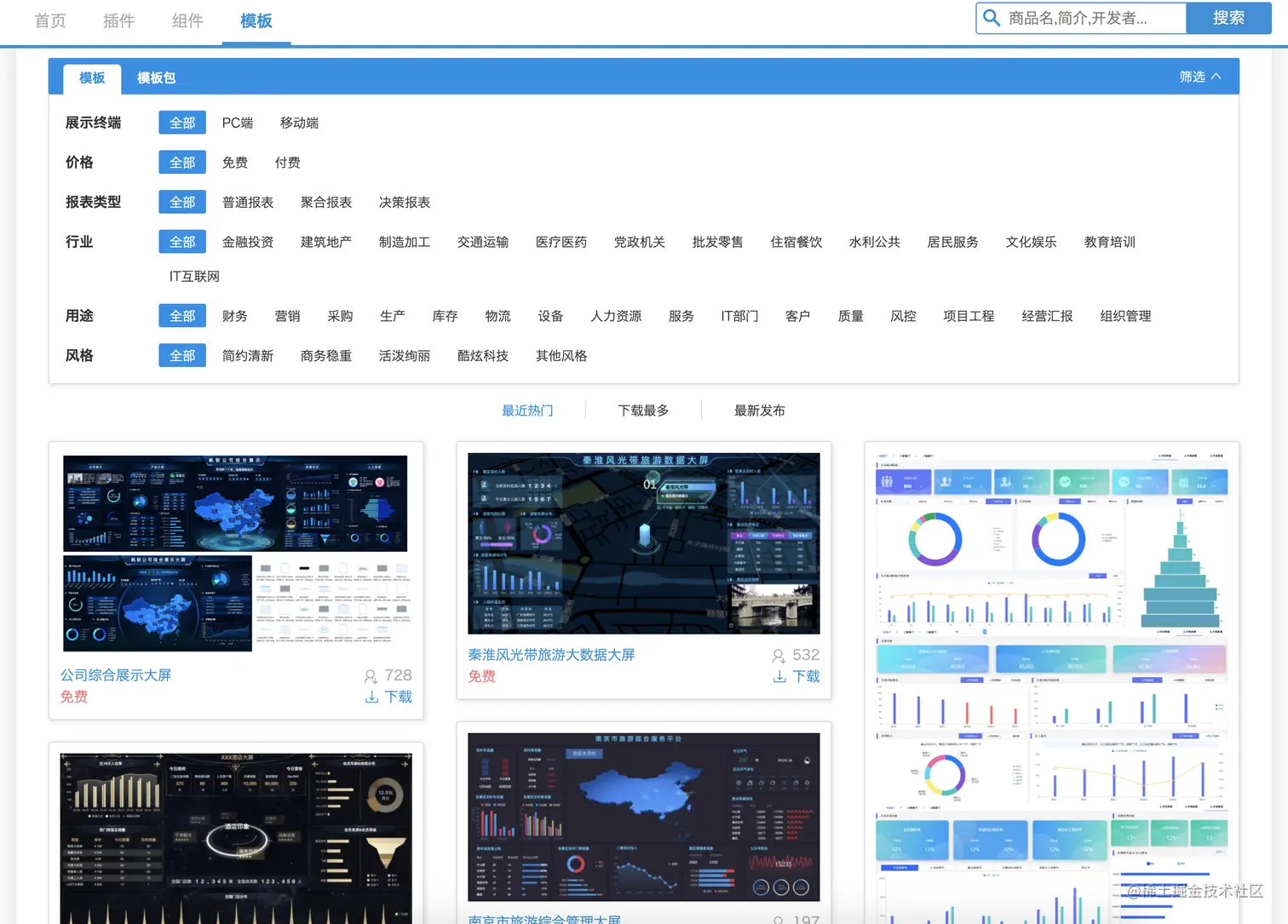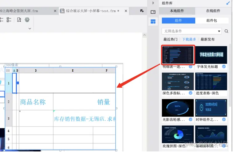 完全复用官方模板示例,不能满足大多数用户的需求,因此,我们还需要结合组件复用打造大屏(需要安装组件复用插件)。
