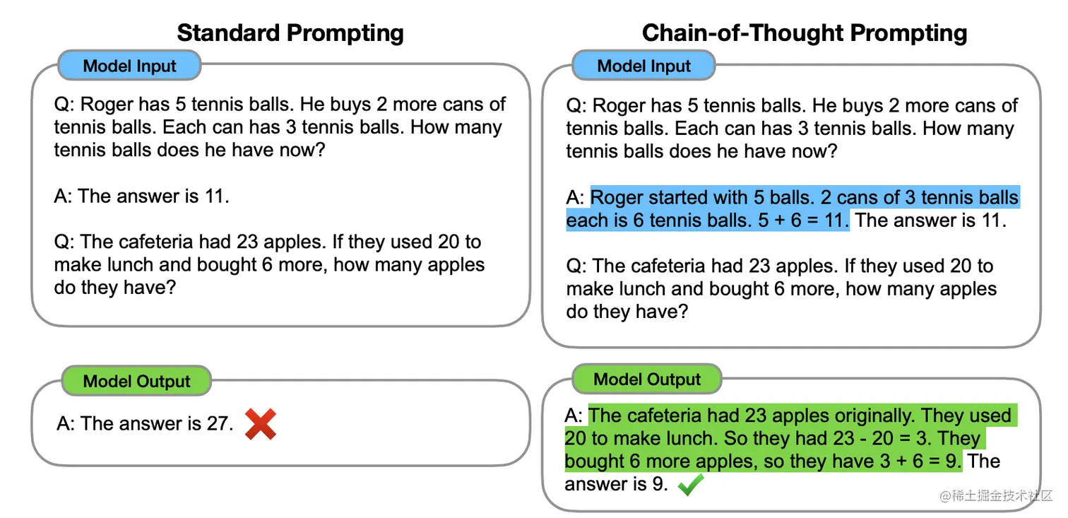 基于上述的第三点缺点,研究人员就找到了一个叫 Chain of Thought 的技巧。