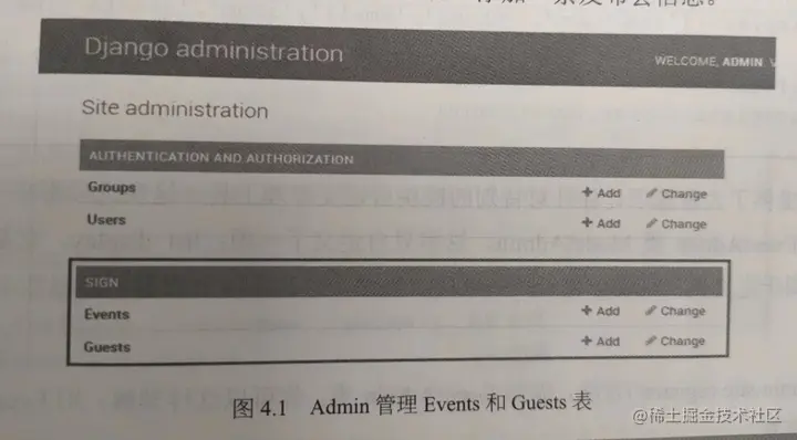 Django提供了大量选项让你针对别的模块自定义管理工具。这些选项都在ModelAdmin类中,创建EventAdmin类ModelAdmin。这里只定义了一项:list_display,它是一个字段名称的数组,用于定义要在列表中显示哪段字段。当然,这些字段名称必须是模型中的Event()类所定义的。