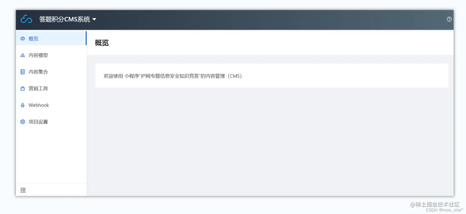 适用于需要为小程序应用增加一个运营管理后台的业务,例如基于该 CMS 可以快速为微信小程序“护网专题信息安全知识竞答”开发后台管理系统,进行题库管理、用户管理等内容管理。