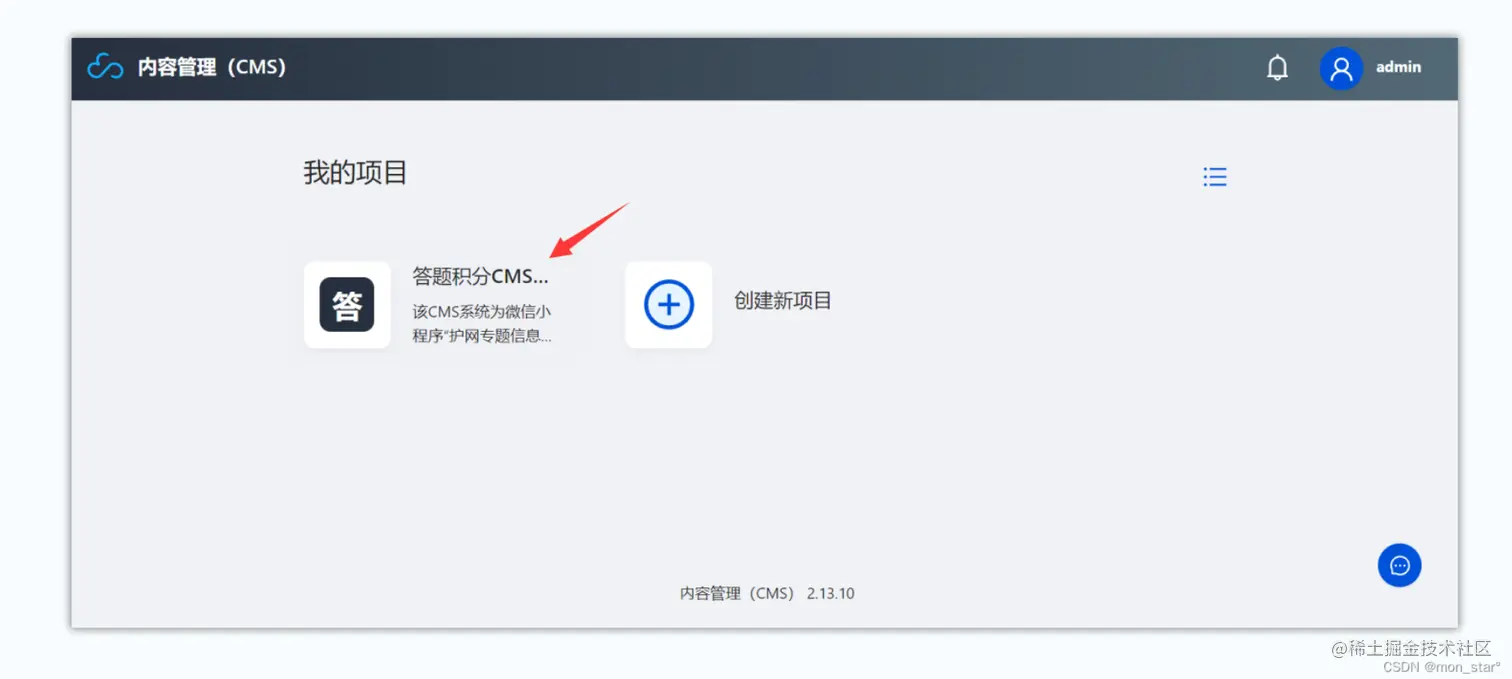 创建完项目后,点击项目卡片;