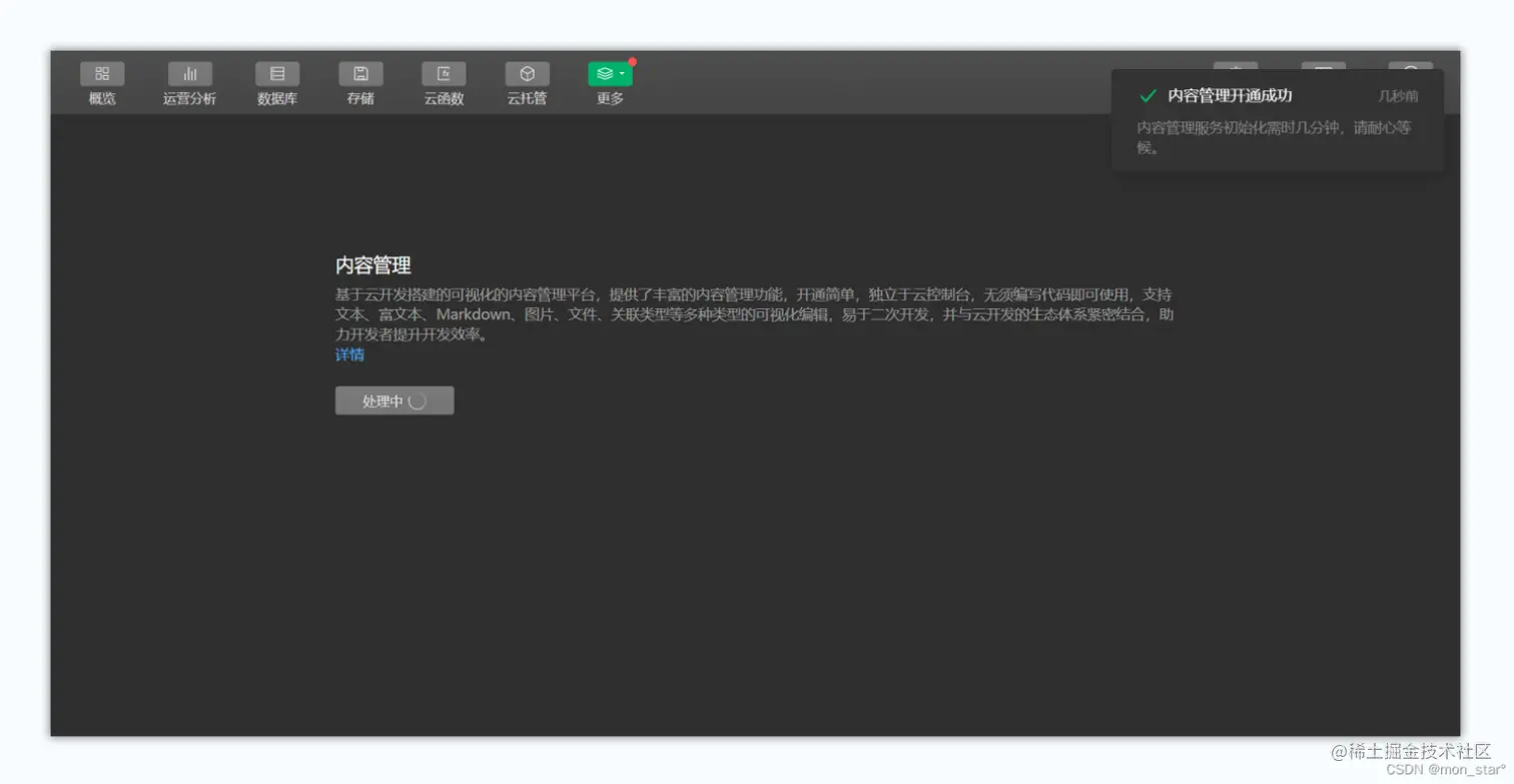 内容管理服务初始化需时几分钟,请耐心等候;