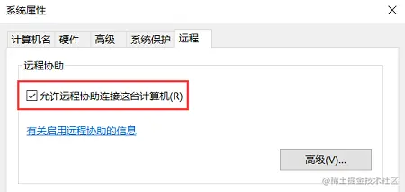 步骤2: 选择系统属性窗口中【远程】选项,在【远程协助】部分中,勾选【允许远程协助连接到此计算机】选项,并且可以选择【允许远程桌面连接到此计算机】选项。
