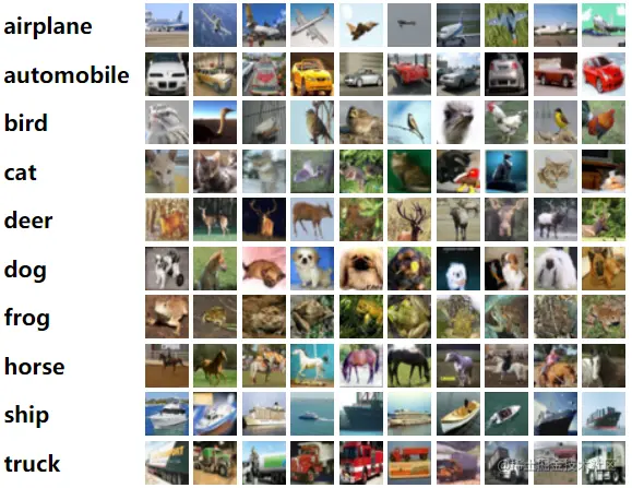 CIFAR-10数据集是Tiny Image的一个子集,包含60000张32x32的RGB图像。这60000张样本被划分为50000张训练样本和10000张测试样本。