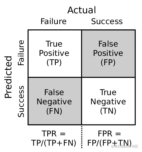 对以上几个概念进行组合便可产生我们所熟悉的混淆矩阵: