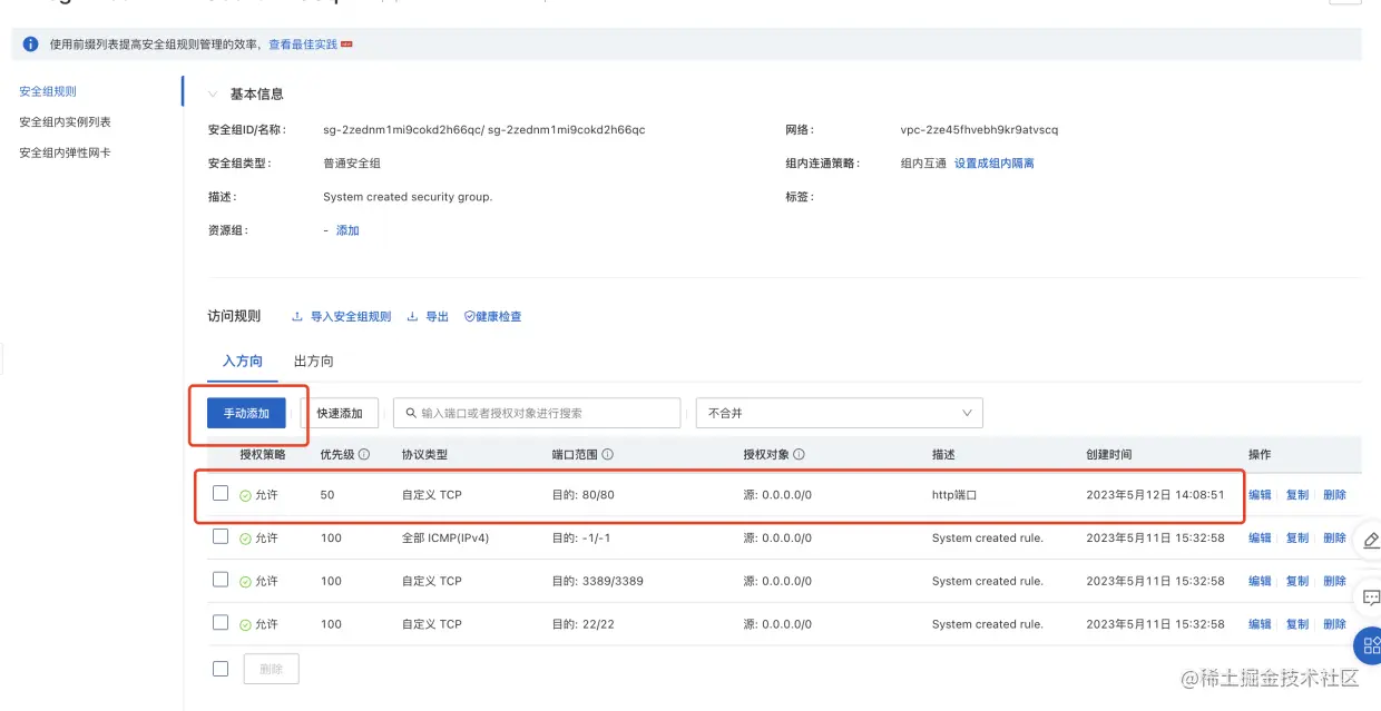 如果您使用的是其他端口号(不是 HTTP 的 80 端口),则需要根据具体情况打开对应的端口。例如,要打开 8080 端口: