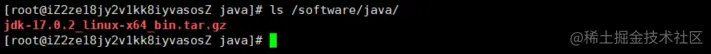 将下载的 jdk-17.0.2_linux-x64_bin.tar.gz 文件上传至 Linux 服务器,我这里选择的是 /software/java 文件夹