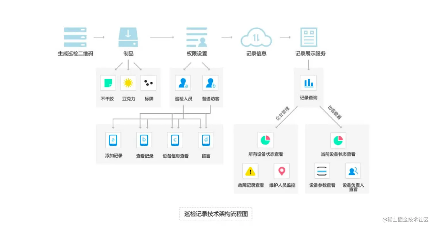 其中运用到最多的便是设备巡检二维码,维护人员在对设备进行检查和维护操作后,可以通过手机微信扫描设备巡检二维码,按照预先设定好的检查项进行检查,发现有缺陷时可以通过录入文字、拍照上传、语音描述等方式对异常情况进行详细说明, 所提交的异常信息会实时通过微信消息发送到管理人员的手机上,管理人员可以随时随地在管理后台或手机微信小程序中查看维护记录,检查巡检计划是否按时完成,并能根据上报的缺陷和故障及时安排相关人员进行设备检修和维护。所有的巡检维护数据都储存在服务器中,管理人员可以在后台将数据导出为Excel或PDF文件。