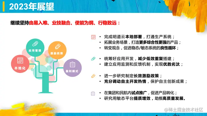 我们将继续坚持由易入难,业技融合,使能为纲,行稳致远。我们才刚刚开始,这个刚刚开始既包括激励的问题,也包括野蛮生长、自由生长出来的产品问题。如果没有很好的管理,就会像厂区的杂草丛生,给未来的数据安全、数据治理带来很多麻烦,所以今年我们有这么几个方面的想法。