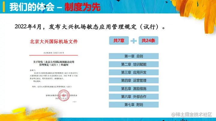 目前大兴机场19个部门里已经有14个部门参与进来,覆盖了安全、服务、运行、经营、办公等领域。大部分的应用开发周期是2周到一个月,去年最保守估计节约了500万元,当然我们没有特意请造价公司去评估,是以传统系统开发经验去判断的。