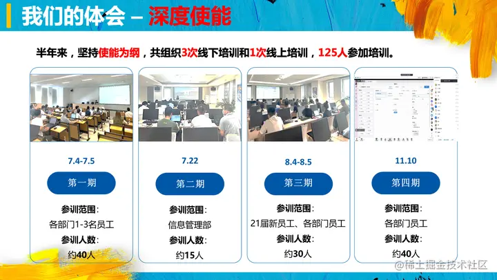**IT部门既要主动服务,也不能急于求成,要持续的使能。**开始的时候我们只针对一个部门去推广,在一个部门做了好多场培训。后面发现等到内部形成了一定的风气,那些由于种种原因没参与进来的人也加入了。所以说,不需要那么着急,强推不如慢慢吸引他。