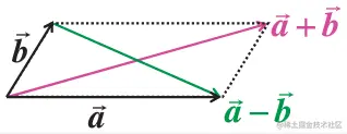 向量 A 和向量 B 进行减法运算得到向量 C,则向量 C 的起点为向量 B 的终点,终点为向量 A 的终点。在 WebGL 中两个点坐标的向量相减,可以计算出这两个点构成的的方向向量(例如:计算光源和物体之间的相对方向)。