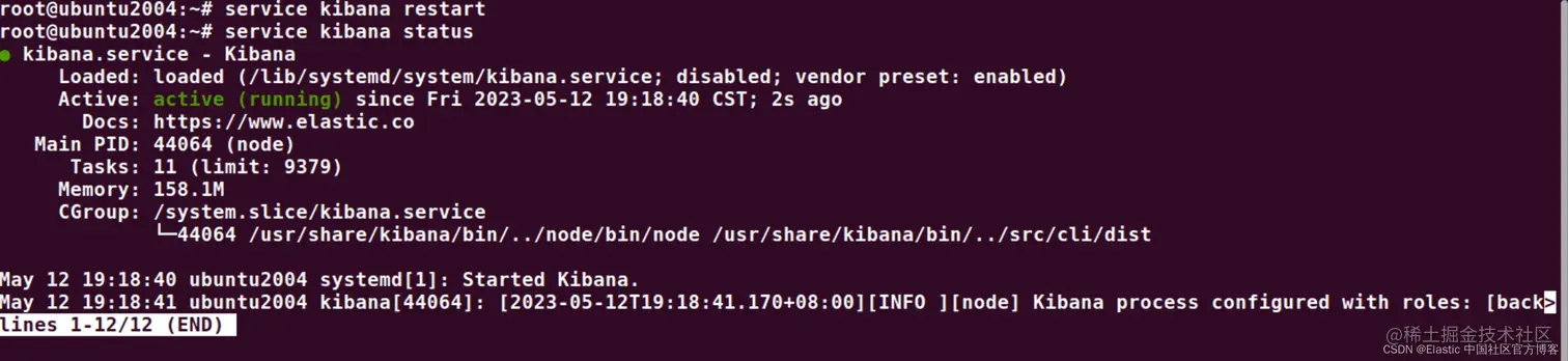 我们再次重新启动 kibana 服务: